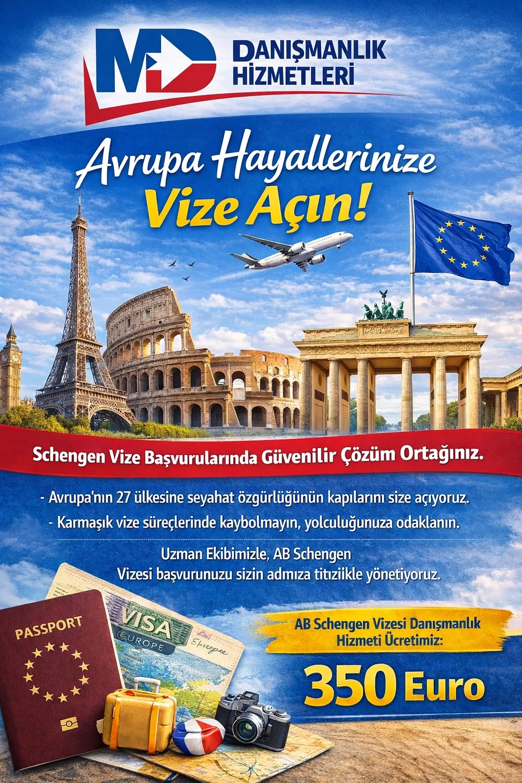 AB Schengen Vizesi Danışmanlık Hizmeti Ücretimiz: 350 Euro